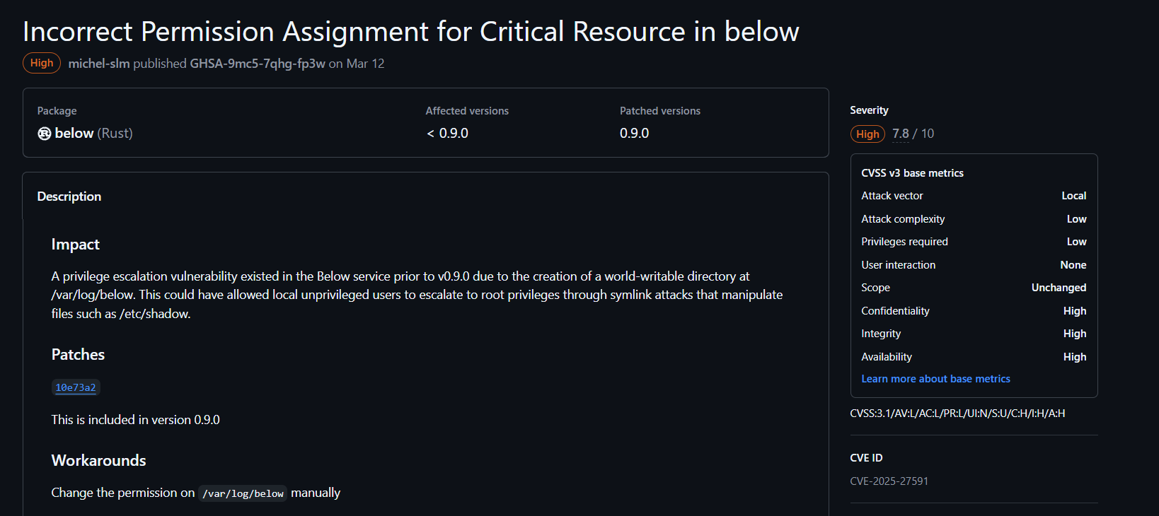 Below v0.9.0 - LPE (CVE-2025-27591)