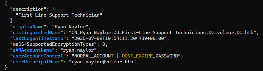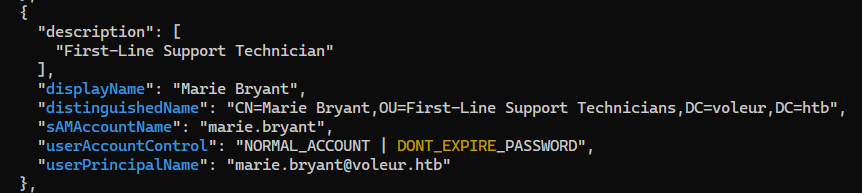 $ldapUser = "CN=svc_ldap,OU=Service Accounts,DC=voleur,DC=htb"